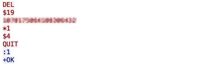 - 第181072号包,也就是在QUIT命令发出161 ms后,Redis服务器端回复了":1"和"+OK"。其中":1"响应DEL命令,"+OK"响应QUIT命令。
