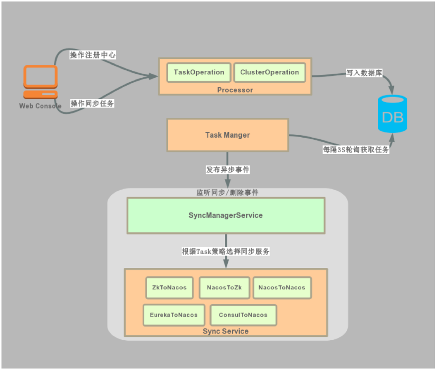 Web Console: 提供给用户进行注册中心和同步任务进行相关界面操作
