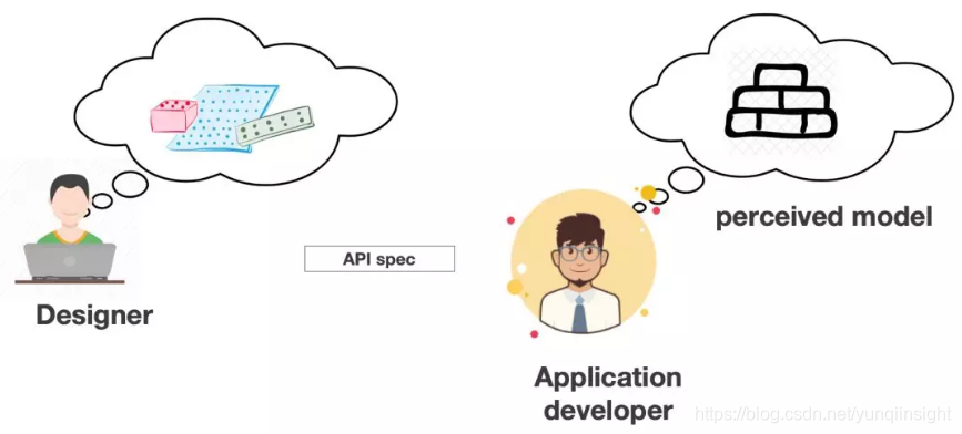 就像下图所示,设计者心中有一个模型,而使用者看到和理解的模型可能是另一个模式,这个模式如果比较复杂的话,使用者使用的方式又可能与自己理解的不完全一致。 对于维护者来说,问题是类似的。