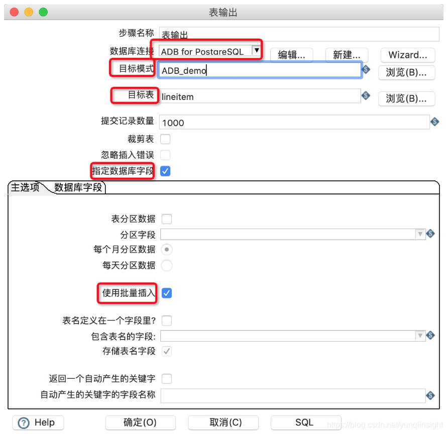 | 表输出 (INSERT方式) | 采用JDBC作为导入方式 支持批量插入,批量插入使用JDBC的batch insert方法 |