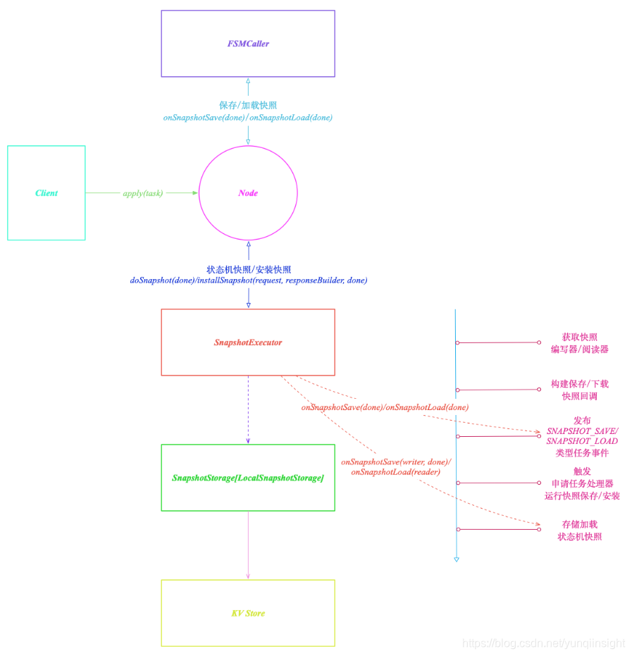 - SnapshotExecutor 用于管理 Snapshot 存储、远程安装、复制。