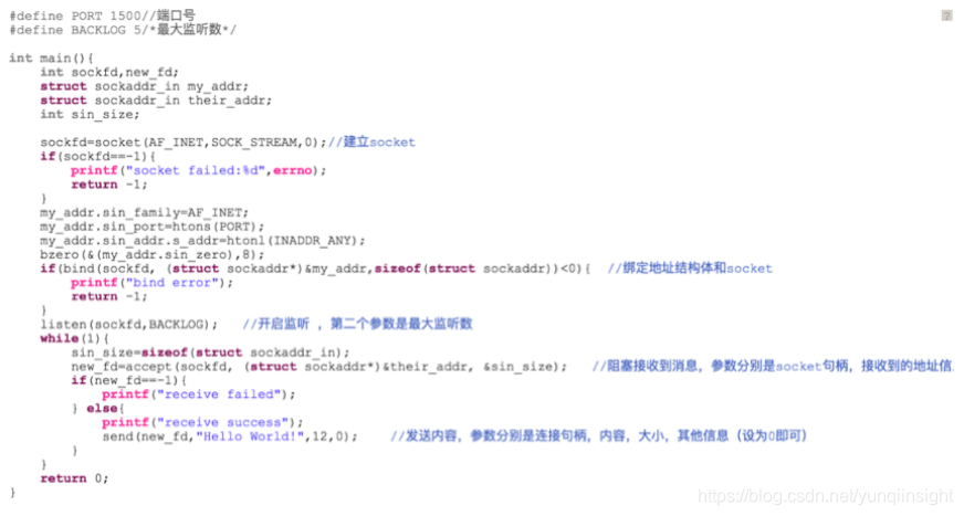 网络编程又可称为Socket编程。编程分为基于Server端开发与基于Client端开发两部分。基于Server端的编程由四大步骤组成,开发者首先创建Socket,利用bind与listen函数绑定监听地址及相应的端口,最后使用accept函数接受来自监听端的请求。Client端的操作较为简便,开发者在创建Socket后使用connect函数对服务器端进行连接即可实现。