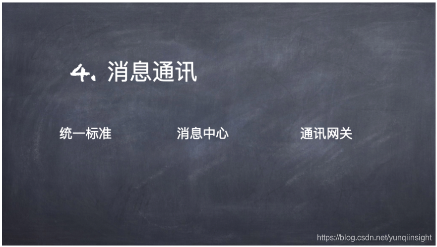 如果系统中包含多个语言栈,多种实现方式。那么统一标准是必须的,要么统一一种RPC或者就使用RestFul API等。消息中心也是一种处理做法,这一点在Java中应用很多,消息中心并不是消息队列,而是一个事件驱动的消息中心。此外,还有通讯网关,这在使用微服务的时候也是一个必要点,其主要解决了监控问题,而且可以通过网关起到中控的作用,比如安全、性能以及用户校验等任务。