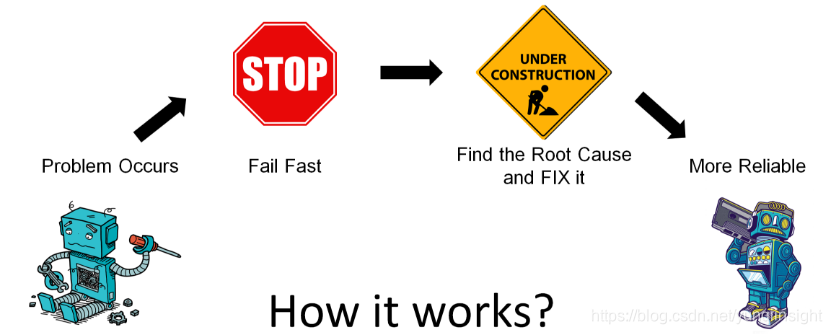当问题发生时,系统立即停止工作,由人工介入找到并以合理的方式解决根本的问题,然后系统恢复运作。通过这样的选择,我们就能够更早更容易地暴露问题,每当系统发生问题之后,真正的根因会更快得以解决,所以最后我们就能得到一个更加可靠的系统。