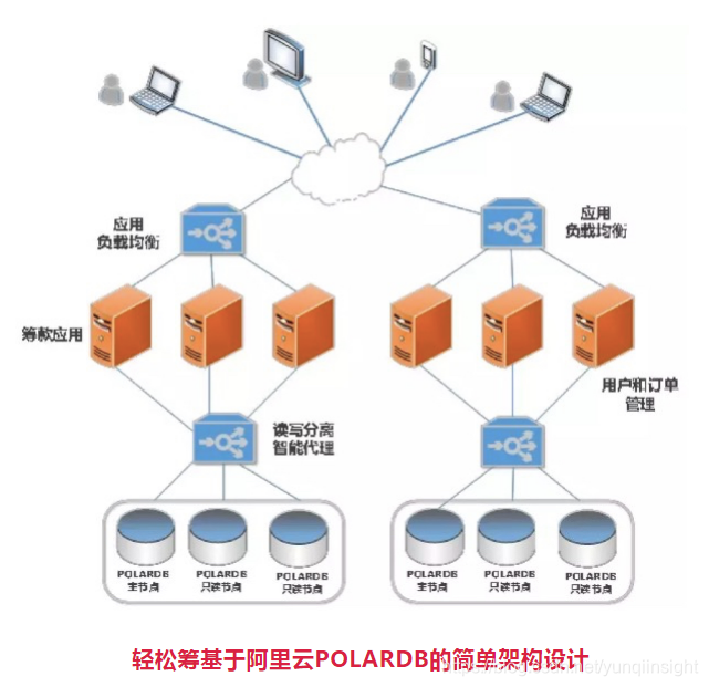 轻松筹最为看重就是阿里云POLARDB存储容量大和免分库分表的特性。因为阿里云POLARDB采用了集群架构,并且采用了计算和存储分离以及读写分离的机制,所以其存储容量最高能够支持100TB,用户无需因为单机容量的天花板而去购买多个MySQL实例做分片,并且也不需要考虑分库分表,因此就简化应用的开发,同时也降低了运维的负担。