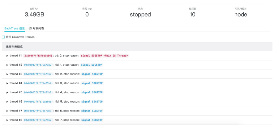 在 Node.js 性能平台 提供的 核心转储告警 + 在线分析能力 的帮助下,此类无法获取到常规 CPU Profile 和堆快照等信息的进程无故崩溃问题也变得有迹可循了,实际上它作为一种兜底分析手段,在很大程度上提升了开发者真正将 Node.js 运用到服务端生产环境中的信心。