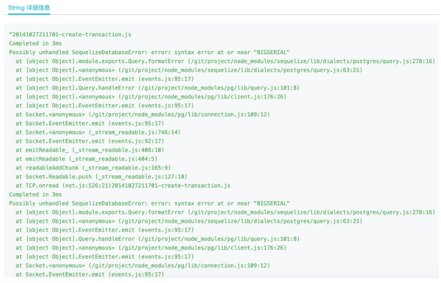 function formatError(err) {// ...// 这里对 Error 对象的 key 和 value 调用 inspect 方法进行序列化const errProperties = Object.keys(err).map(key => inspect(key, err[key])).join('\n');// ...
