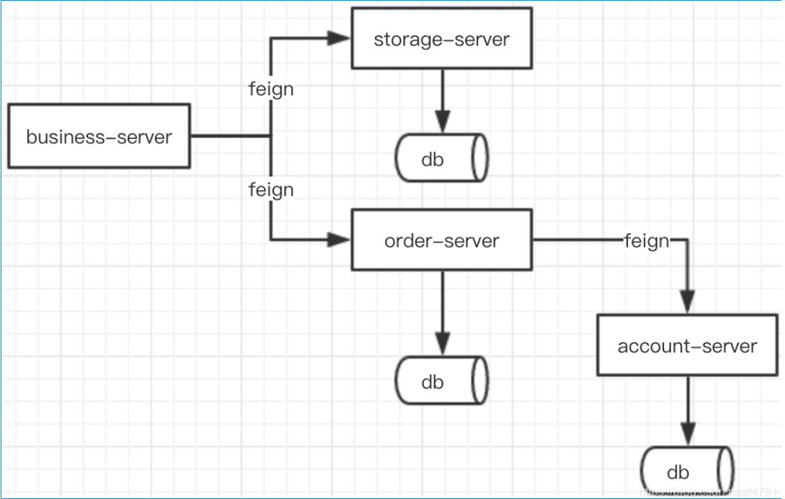 public class BusinessService {@Autowiredprivate StorageFeignClient storageFeignClient;@Autowiredprivate OrderFeignClient orderFeignClient;@GlobalTransactionalpublic void purchase(String userId, String commodityCode, int orderCount){storageFeignClient.deduct(commodityCode, orderCount);orderFeignClient.create(userId, commodityCode, orderCount);}