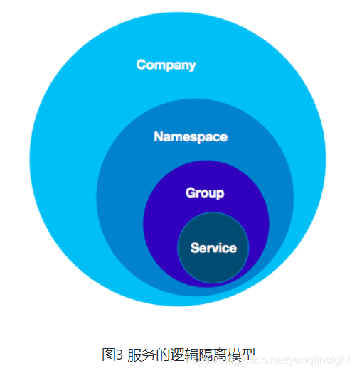 Nacos提供了四层的数据逻辑隔离模型,用户账号对应的可能是一个企业或者独立的个体,这个数据一般情况下不会透传到服务注册中心。一个用户账号可以新建多个命名空间,每个命名空间对应一个客户端实例,这个命名空间对应的注册中心物理集群是可以根据规则进行路由的,这样可以让注册中心内部的升级和迁移对用户是无感知的,同时可以根据用户的级别,为用户提供不同服务级别的物理集群。再往下是服务分组和服务名组成的二维服务标识,可以满足接口级别的服务隔离。