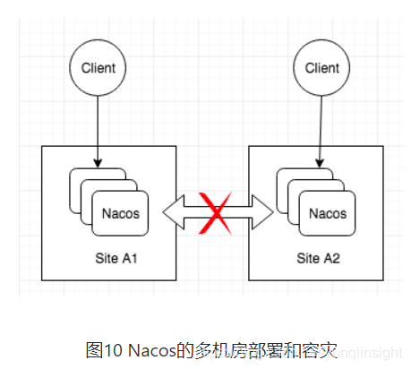 首先是双机房容灾,基于Leader写的协议不做改造是无法支持的,这意味着Zookeeper不能在没有人工干预的情况下做到双机房容灾。在单机房断网情况下,使机房内服务可用并不难,难的是如何在断网恢复后做数据聚合,Zookeeper的单点写模式就会有断网恢复后的数据对账问题。Eureka的部署模式天然支持多机房容灾,因为Eureka采用的是纯临时实例的注册模式:不持久化、所有数据都可以通过客户端心跳上报进行补偿。上面说到,临时实例和持久化实例都有它的应用场景,为了能够兼容这两种场景,Nacos支持两种模式的部署,一种是和Eureka一样的AP协议的部署,这种模式只支持临时实例,可以完美替代当前的Zookeeper、Eureka,并支持机房容灾。另一种是支持持久化实例的CP模式,这种情况下不支持双机房容灾。