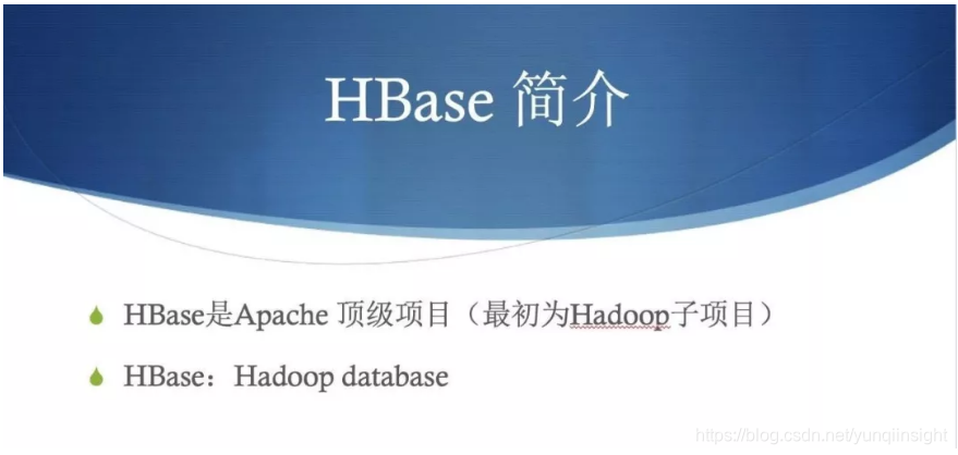 HBase 名称的由来是由于其作为 Hadoop Database 存在的,用来存储非结构化、半结构化数据。