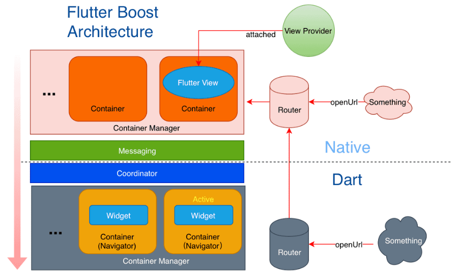 - Flutter Container Manager进而得到通知,负责创建出对应的Flutter容器,并且在其中装载对应的Widget页面。