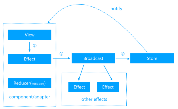- 当effect无法处理此action,且此action非lifecycle-actions,且不需中断则广播给当前Page的其余所有effects