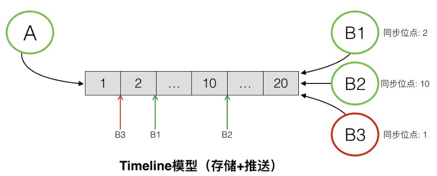 如图是Timeline模型的一个抽象表述,Timeline可以简单理解为是一个消息队列,但这个消息队列有如下特性: