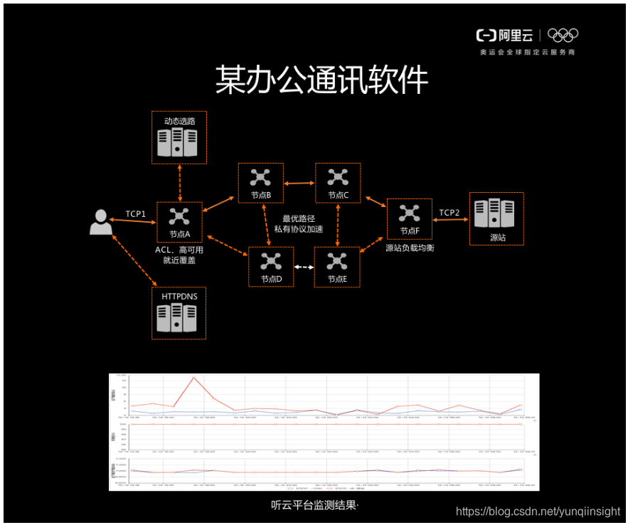 这个场景下的最大痛点是偏远地区消息不稳定以及海外通信质量差,会出现失败率高的情况,IPA通过下图中的优化架构,从HTTPDNS接入,在节点内部通过ACL有效保证端口的高可靠性,全球访问速度提升超过50%。