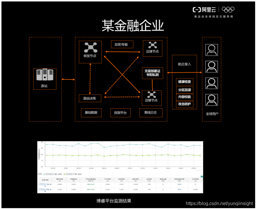 金融交易的展示不实时,用户的交易就无法保障,针对海外交易延时偏高,价格变动频繁,交易过程失败率高,对于安全性要求更高等问题,因此,阿里云针对针对链路传输加密,对源站保障负载均衡,最终整体延迟降低超过了80%。
