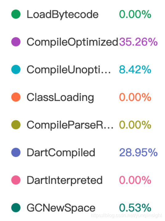 Dart App-jit模式 43%以上的时间参与编译,当然取消代码优化,可以让编译时间大幅下降,在优化情况下可以将这个比率下降到13%