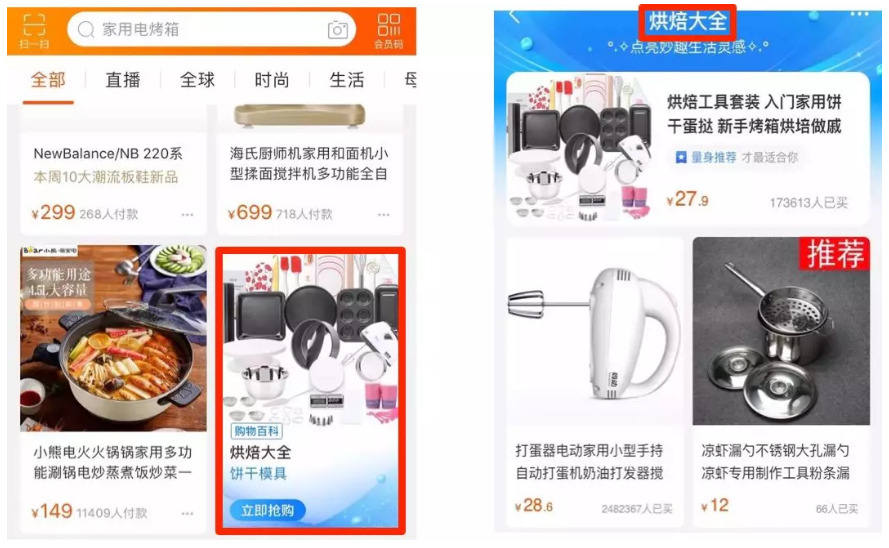 电商认知图谱现已在淘宝搜索推荐等多个产品落地应用,主要的产品形式是以concept为载体的主题卡片,如首页猜你喜欢瀑布流中的”购物百科“: