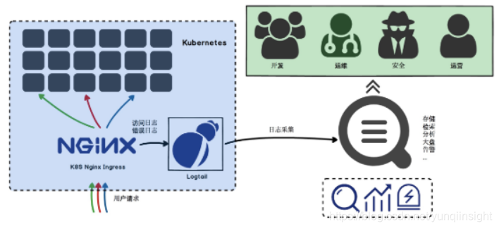 为简化广大用户对于 Ingress 日志分析与监控的门槛,阿里云容器服务和日志服务将 Ingress 日志打通(官方文档https://help.aliyun.com/document_detail/86532.html[](https://help.aliyun.com/document_detail/86532.html)),只需要应用一个 yaml 资源即可完成日志采集、分析、可视化等一整套 Ingress 日志方案的部署。