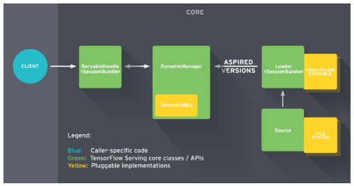 TensorFlow服务由一些抽象组成,这些抽象类用于不同任务的API,其中最重要的是Servable,Loader,Source和Manager,让我们来看看他们之间是如何互动的: