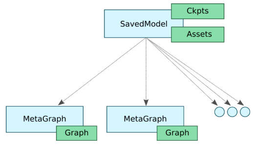 在此环境中,SavedModel允许你使用不同的配置保存图形。在我们的例子中,我们有三个不同的图形和相应的标签,如“训练”、“推理”和“移动”。此外,这三个图形为了提升内存效率还共享相同的变量集。