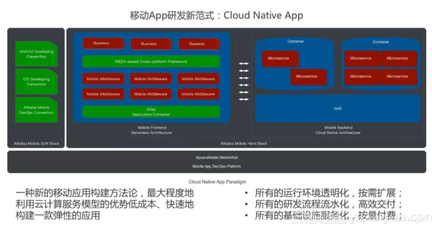 基于上述提到的这一套端到端的全链路移动应用研发体系,阿里巴巴也提出了一种新的移动App研发范式——Cloud Native App。