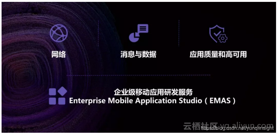 接下来分享阿里巴巴在移动App的研发关键路径上所开放出来的一系列的核心能力,主要分为了几个关键环节:网络、消息与数据、应用质量和高可用以及企业级移动应用研发服务EMAS。
