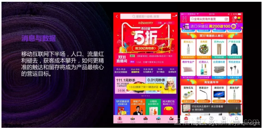 移动互联网进入到下半场,人口流量红利也在慢慢退去,如何实现更精准的客户触达和留存成为每一个产品最核心的运营指标。如果说大家之前有关注过手淘的“双11”会场页面会发现手淘已经实现了“千人千面”能力,同时基于数据智能消息推送系统在线上运转多年并且取得了非常好的成绩。现在阿里巴巴也会把这些产品能力背后的核心技术开放出来,帮助大家实现对于客户的拉新、促活、留存和转化。
