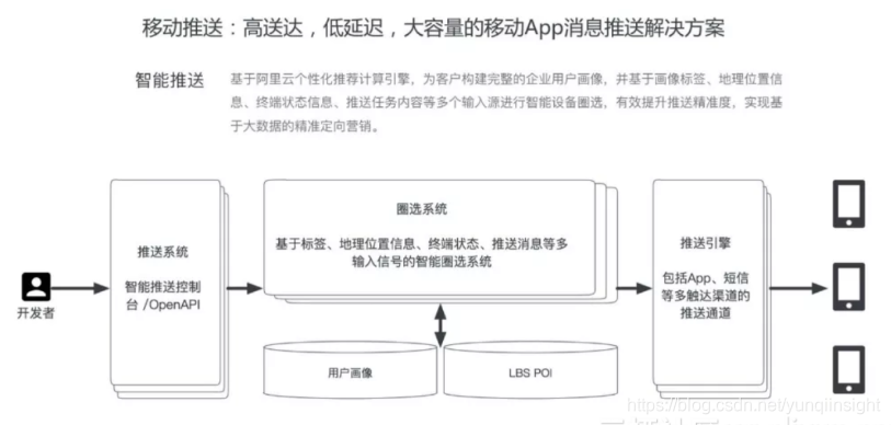 阿里巴巴也会进一步开放集团内部的基于大数据的智能推送的能力,基于个性化推荐引擎可以构建企业完整的用户画像,基于用户画像标签、终端用户地理位置信息、终端状态信息以及每一次推送具体的内容等多个输入源进行智能的设备圈选,有效地提升推送的精准度,能够帮助客户实现真正意义上基于大数据的精准定向营销。