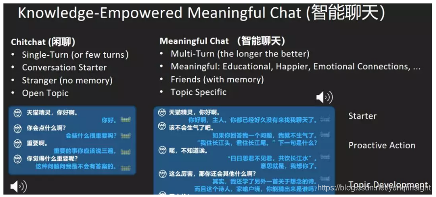 对于一些不是“二哈”知识领域的问题,阿里AI目前采用了闲聊(ChitChat)的技术,从互联网上公开的人类对话库中来找到最适合回复。目标是让来电者看不出“二哈”可能的知识缺乏。