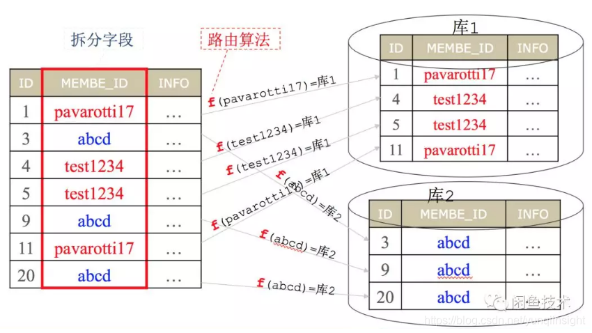 本质是数据库的水平拆分问题,把一个数据库切分成多个部分放到不同的数据库(server)上,从而缓解单一数据库的性能问题,下图描述分表分库的核心原理: