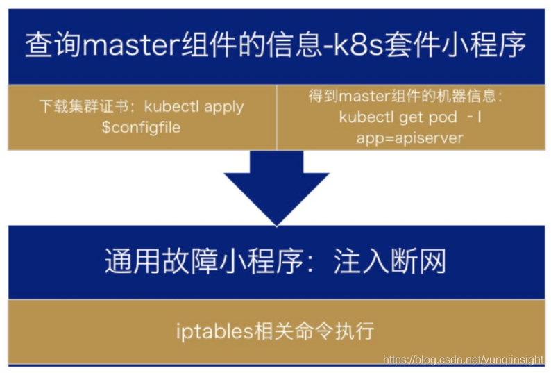 举个例子,上文中 master 组件故障的场景中,我们就可以利用以上的两类小程序来完成故障注入的操作: