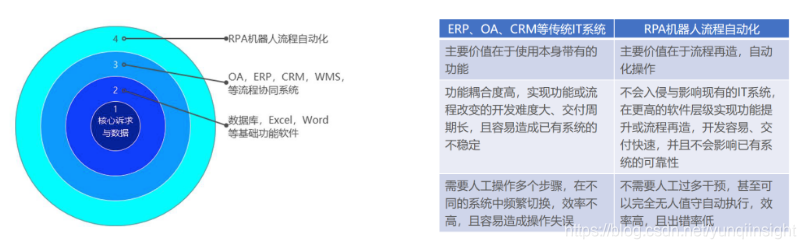 与传统的ERP、OA、CRM等IT系统不同,RPA其实运行在更高的软件层级。这就决定了它不会侵入影响已有的软件系统,而是在表现层对系统进行操作,从而在帮助企业提升效能的过程中,保持企业已有的IT系统功能平稳、运行可靠。