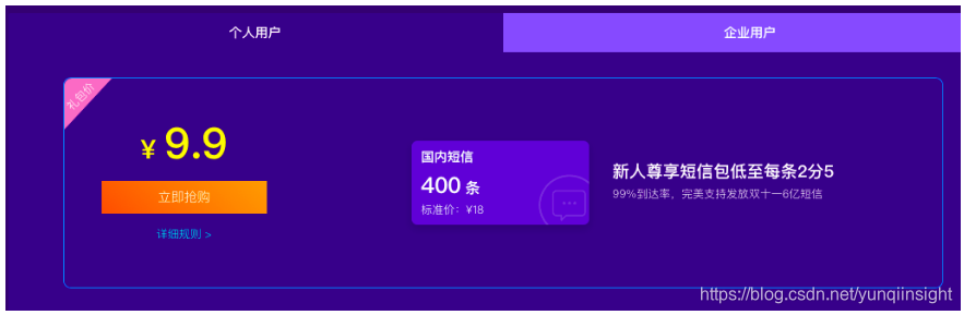 丨关键词:短信套餐包、0.028元/条、新人礼包、套餐折上折