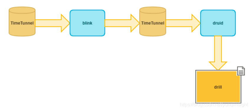 在blink和druid之间增加了TimeTunnel进行数据中转以保证blink产出流数据被转化为下游druid支持的流数据源形式。