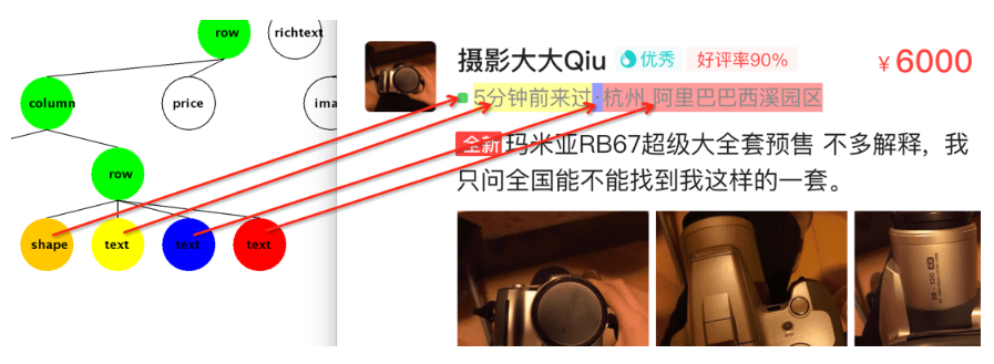 组件的识别需要反复的通过全局特征反馈来纠正,通常会采用SSD+CNN协同工作,比如下图的红色“全新“shape,这该图例中是richtext的部分,同样的shape样式可能属于button或者icon。