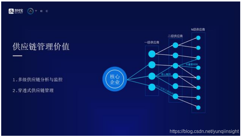 2.通过区块链的方式,企业与供应商间可以建立密切的协作关系。蚂蚁金服的区块链技术可以做到对供应链进行多级分析并进行穿透式的管理,对于很多对供应链管控要求严格的行业是一个很大的助力。通过区块链技术可以在企业与供应商间更快更好地建立良性的协作与管理关系。