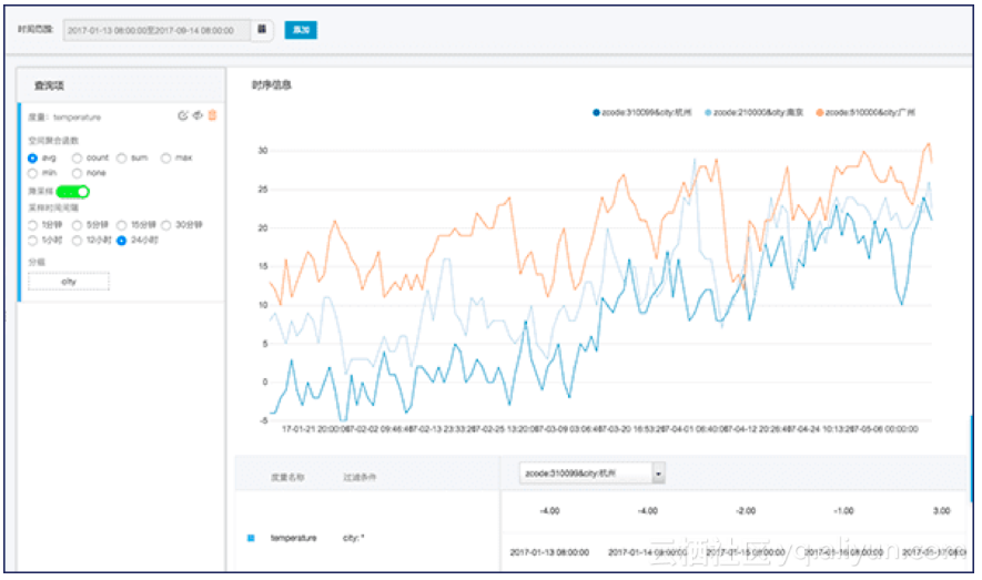 时序数据库支持丰富的计算能力,如降精度和聚合计算。