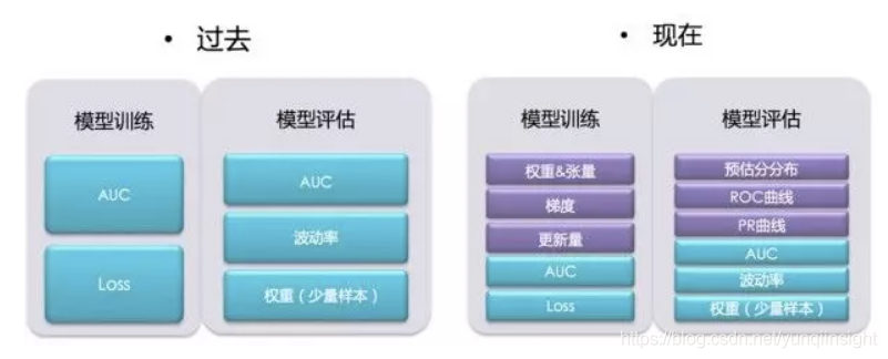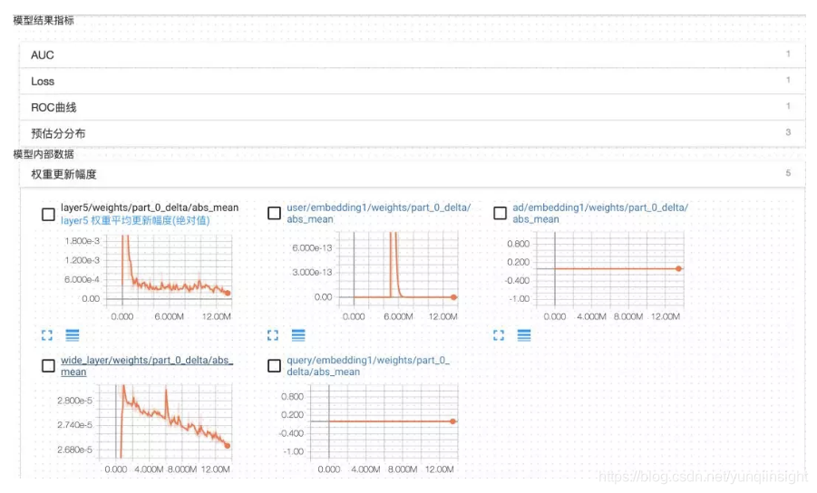 通过研究,我们发现训练和评估过程中大量中间指标与模型效果能产生关系,通过系统的分析建模张量、梯度、权重和更新量,能够对算法调优、问题定位起到辅助决策作用。而且,通过改进AUC算法,分析ROC、PR、预估分布等更多评估指标,能够更全面地评估模型效果。