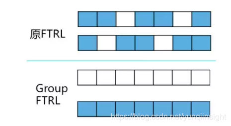 例如:当包含新特征的样本进入时,一个特征对应的一组参数(如embedding size为7,则参数数量为7)被激活,FTRL判定特征中的部分参数无效时,也不能安全地将该特征删除。如图: