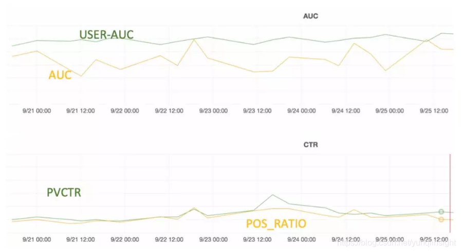 训练级监控: AUC, User-AUC(参考备注),loss, 模型打分均值(与样本的正负比例对齐),异常信息。
