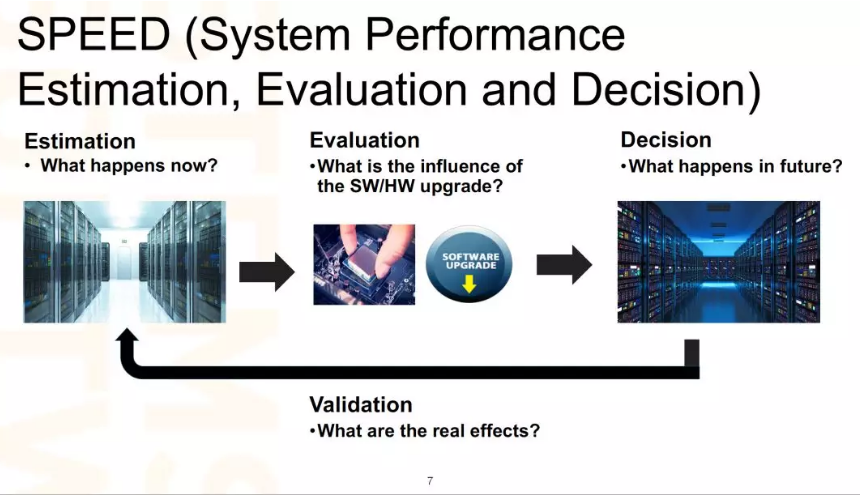 为了解决上面提到的问题,我们开发了 SPEED 平台。首先是估计当前线上发生了什么,即 Estimation,通过全域监控采集数据,再进行数据分析,发现可能的优化点。比如,某些硬件整体表现比较差,可以考虑替换。