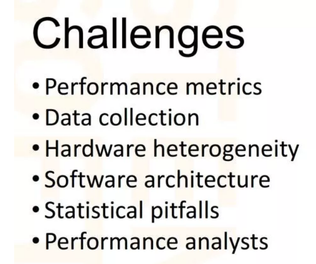下面具体讲几个数据中心性能分析的挑战,基本上是线上碰到过的具体问题,希望能引起大家的一些思考。