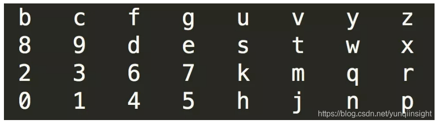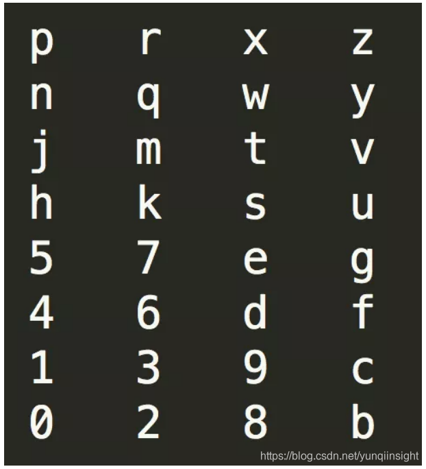 根据这个字符与方位的转换关系,我们可以知道,奇数位上的字符与位置对照表如下: