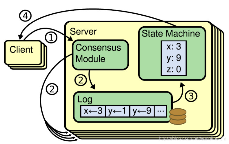 说到一致性协议,我们通常就会讲到复制状态机。因为通常我们会用复制状态机加上一致性协议算法来解决分布式系统中的高可用和容错。许多分布式系统,都是采用复制状态机来进行副本之间的数据同步,比如HDFS,Chubby和Zookeeper。