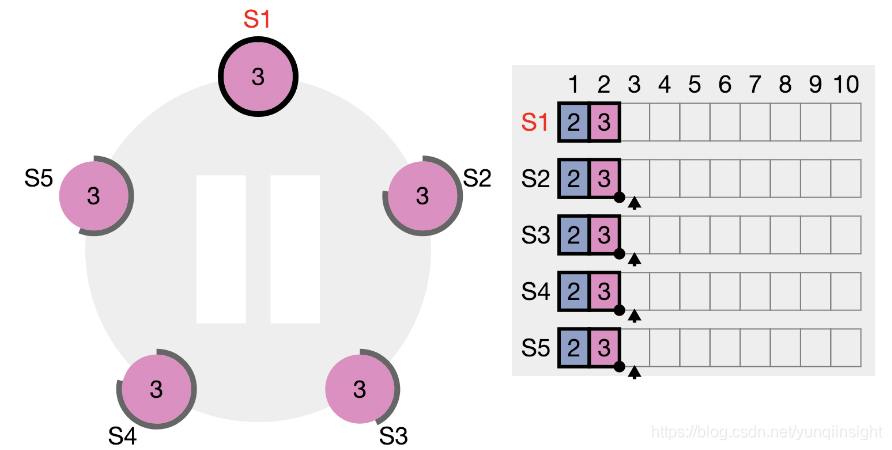 此时S2又发生一次写入,这次写入完成后,会把Committed index移动到2的位置,因此index=1的entry也被认为已经commit了。