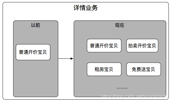 一个业务,有多种形态的实现,很容易对应到设计模式里的策略模式。最粗暴的方式,每个垂直业务都自己实现详情页。