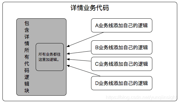 3)C详情业务线的同学本想只关注C详情业务逻辑,发现所有业务都在一起,不得不将所有业务都理清楚一遍;