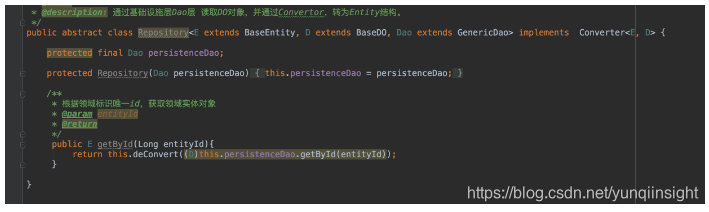 首先通过领域层的Repository,调用基础设置层的Dao读取DO结构,再使用Convertor转为Entity领域对象。