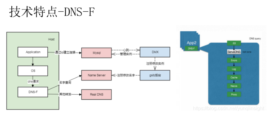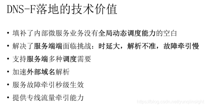 第二,DNS-F解决了服务端端到端面临的挑战,即延时大、解析不准、故障牵引慢的问题。